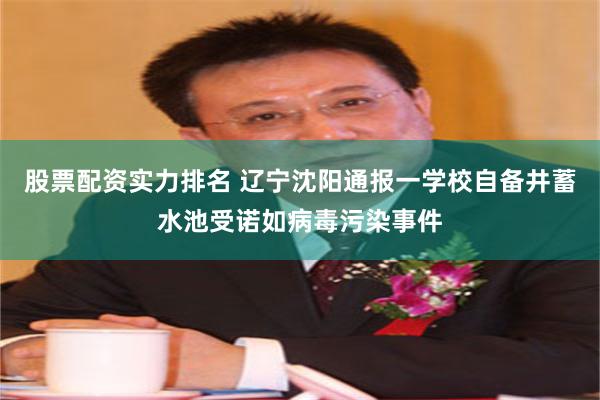 股票配资实力排名 辽宁沈阳通报一学校自备井蓄水池受诺如病毒污